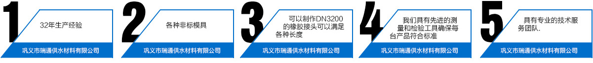 鞏義市瑞通供水材料有限公司是集科技研制、生產(chǎn)制造,市場(chǎng)開發(fā),商貿(mào)洽談、從事貨物和技術(shù)進(jìn)出口業(yè)務(wù)于一體的專業(yè)性實(shí)體生產(chǎn)企業(yè)。我公司主要產(chǎn)品已形成單球可曲撓橡膠接頭、可曲撓合成單球橡膠接頭、雙球橡膠接頭、加固型翻邊橡膠接頭、異徑橡膠接頭(大小頭)。